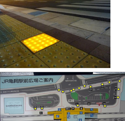 弱視者や視力の衰えた高齢者の夜間における歩行は安全ではなく、それは、看板や商店照明などの光が溢れているところでも例外ではなく、かえって信号など を見誤るため危険です。このため、同教授らは、弱視者や高齢者が安心して安全に道を歩くことのできる歩行誘導装置を開発、そのうち点字ブロックは実用化さ れ、すでに京都府下をはじめ千葉、つくば、北海道などに敷設されています。また、光るボラードについては、弱視者による評価試験を重ねて開発し、実用にこ ぎ着けたところです。