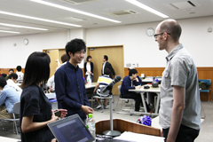 講義に聞き入る参加者 | 学生による発表の様子 |