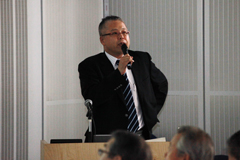 行場吉成特任教授の挨拶の後、井上氏から、「どうなる日本のものづくり -メイドインジャパンの将来-」と題した講演が行われました。講演は、「為替相場の変動に一喜一憂する日本の製造業で今、何が起こっているのか」・「ものづくりの現場取材から見えてくる大手メーカーの本当の実力とは」というテーマを中心に進められました。