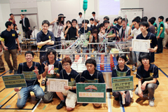 本学の学生と教員の共同プロジェクトである「ROBOCON挑戦プロジェクト」は、NHK大学ロボコンで優勝することを目指して2006年に発足、今年 6月に行われた「NHK大学ロボコン2013」ではベスト8に進出したほか、デザインの良さが評価され、ローム株式会社による特別賞を受賞しています。