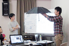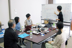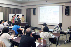 | 企業招待者のアドバイスを受けながらディスカッションを行う学生達 | |