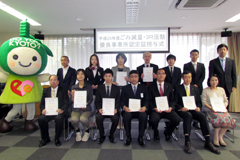 京都市は、大規模事業所を対象に、事業ごみの減量及び再資源化への積極的な取組を顕彰する「ごみ減量・3R活動優良事業所」認定制度を平成24年度に創 設しました。本学はこのたび平成25・26年度の「ごみ減量・3R活動優良事業所」に認定され、表彰を受けました。