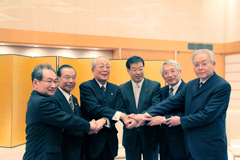 本式典は、稲盛和夫京セラ株式会社名誉会長が三大学教養教育共同化施設(仮称)建設のため、京都府に20億円の寄附申出をされたことを受け、京都府公館レセプションホールにて挙行されました。