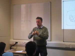 今回の海外研修の受入先である、Andrew Wilson 教授の講義に参加させていただいた。Fundamental of Chemical Biologyという一つの講義科目を3人の教員で担当し、1人が毎日1時間の講義と演習を行い2週間(1~2週目)で講義と演習を終了する。3週目と4週目は別の講義を受講し、5週目には1~2週目の講義のテスト(120分)が行われる。