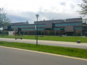 この”Tulln”キャンパスは1994年に大学内研究機関のために設置され、2011年に拡張されたもので、同一の建物内にAIT(Austrian Institute of Technology, オーストリア技術研究所)とBOKUが入居しています。BOKUでは我々のグループ以外に6つの研究室がこのキャンパスで研究を行っています。また同敷地内にはBOKUやAIT以外にも研究施設があり、産学連携拠点としての役割も担っています。そして地域に密着した施設として、子どもたち向けの科学体験や市民向けのコンサートやダンスパーティなどの行事も頻繁に行われています。