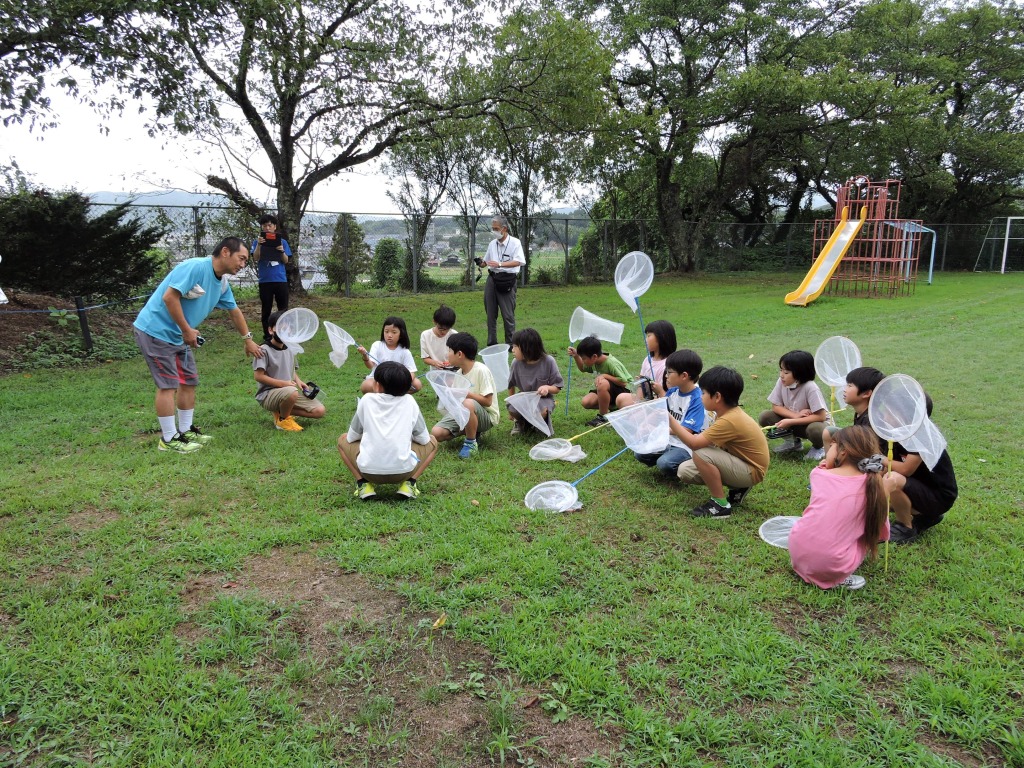 • 虫を捕まえる児童ら