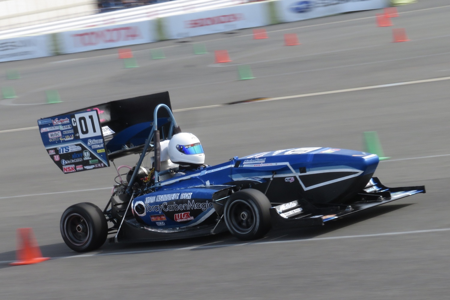 最終日、20kmの耐久走行であるエンデュランスでは、マシンは快晴の下で軽快な走りを見せました。他校と比べても明らかに速いラップを刻み続け、まさにチームのモチーフであるイルカが大海原を泳ぎ回るような走行でした。結果はエンデュランス1位、燃費でも優勝争いチームを上回り、総合優勝と4連覇をつかみ取りました。