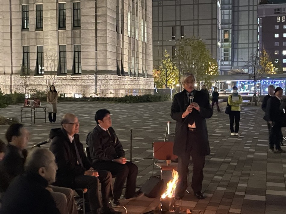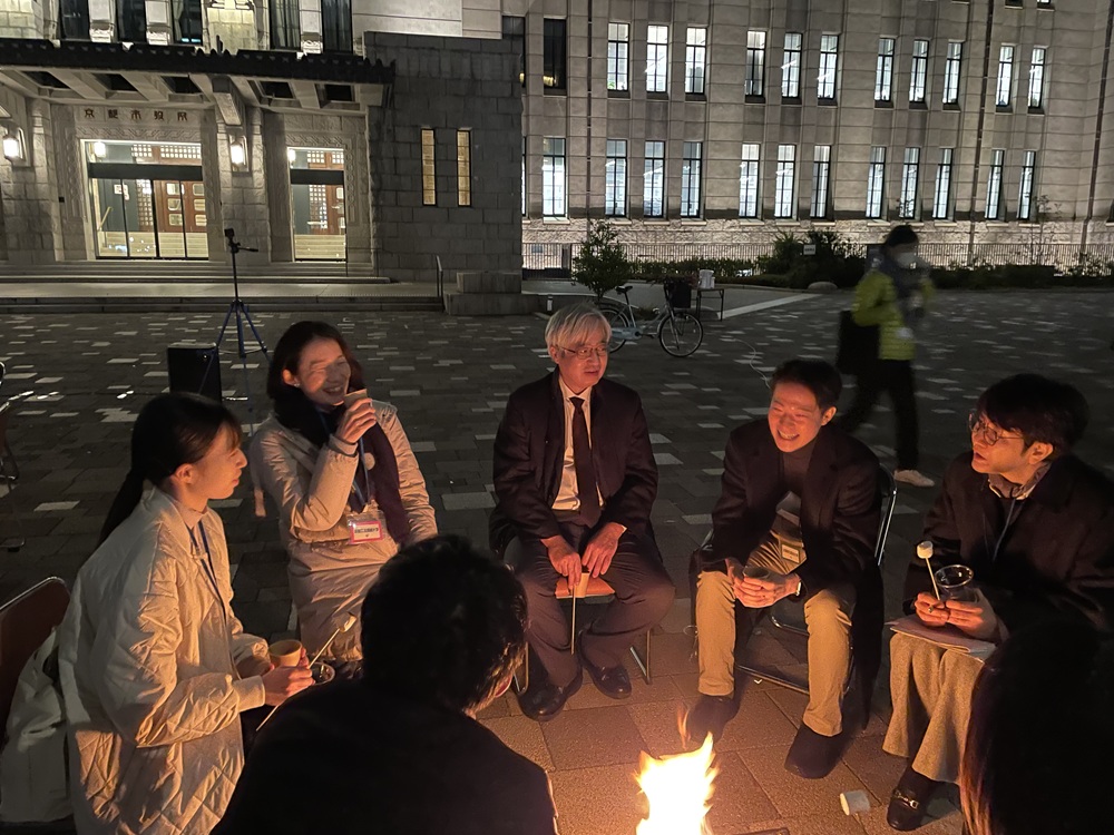 2025年12月8日、京都市役所の庁舎前広場にて開催された鴨川4(フォー)プロジェクト「小さい焚火を囲む会」に参加しました。