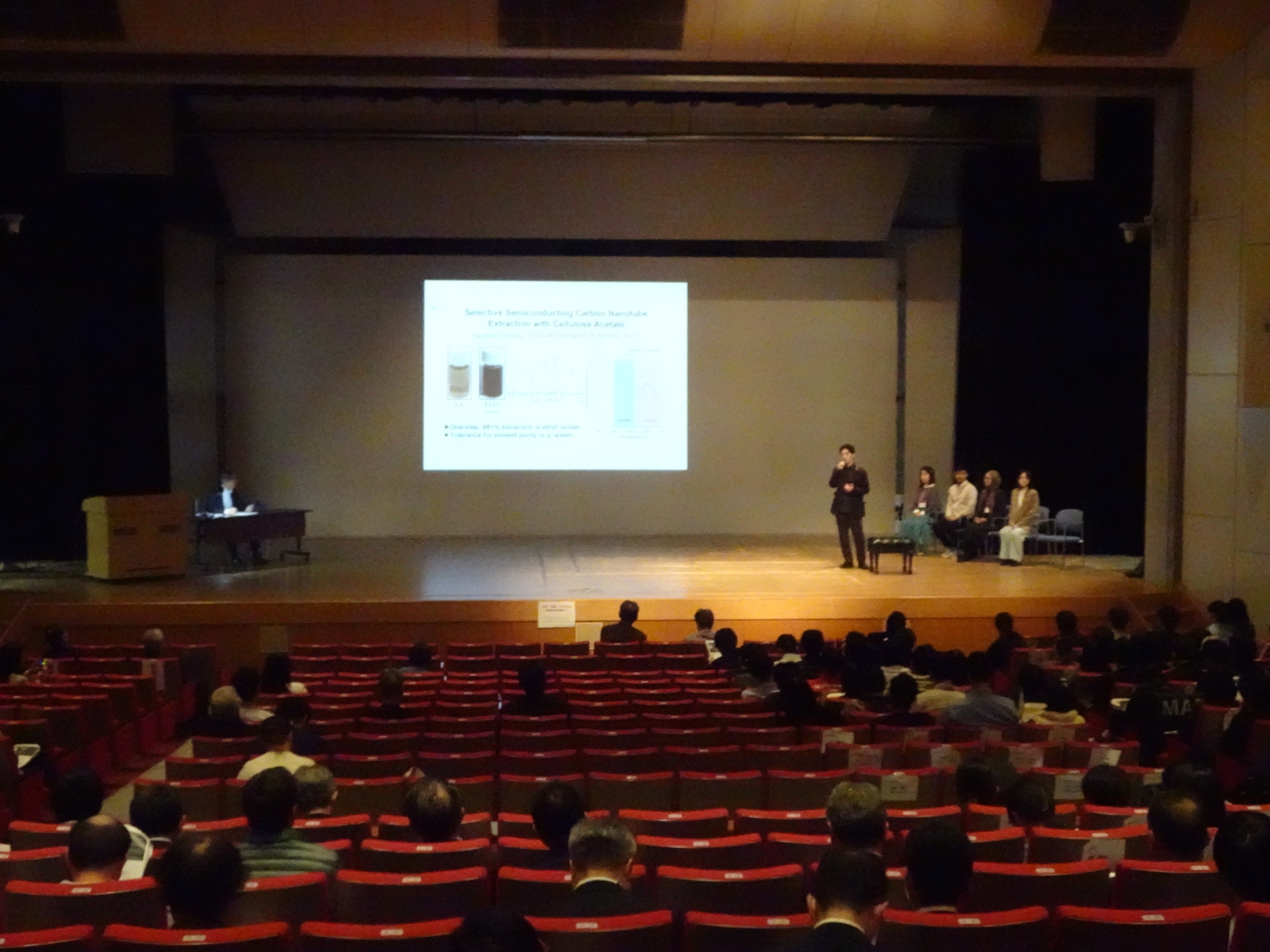 参加者は年々増加しており、今回は奈良での初開催にも関わらず過去最多となる222名が参加、83名の博士学生が登壇しました。本学からは18名の博士後期課程の学生が登壇し、博士後期課程 物質・材料化学専攻の西口直輝さんが企業賞を受賞しました。