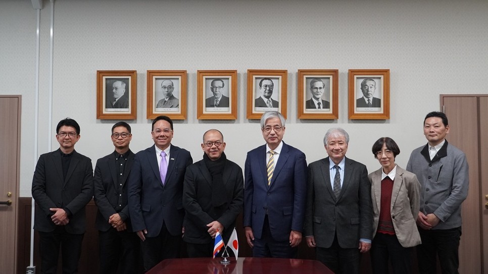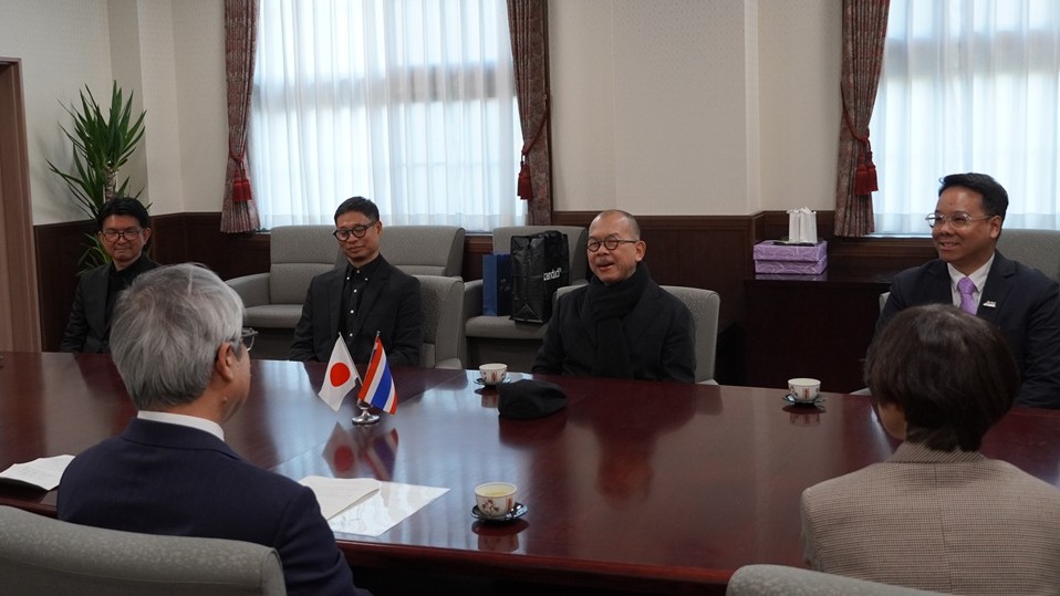2026年2月13日、チェンマイ大学(CMU・タイ)のEkkachai Mahaek 副学長及びPandin Ounchanum 建築学部長をはじめとするジョイント・ディグリー・プログラム担当教員一行が吉本 昌広 学長を表敬訪問されました。