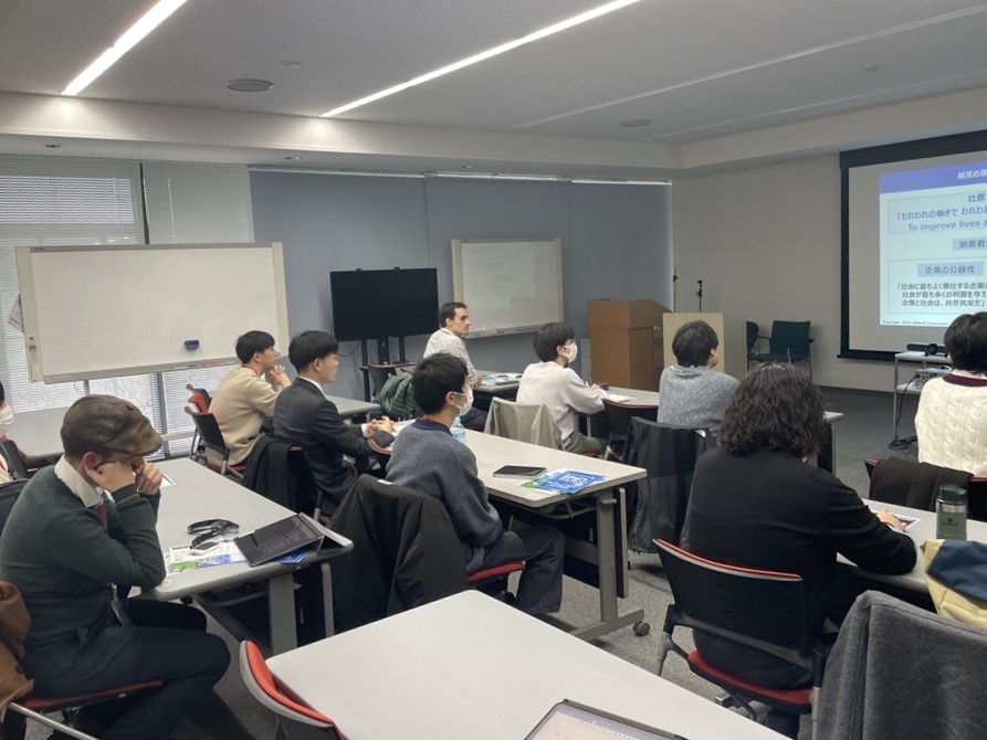 本学では、トランスファラブルスキルの醸成、課題設定能力・研究遂行の基礎力の向上を目的として、企業訪問ツアーを毎年複数回実施しています。ツアーでは、グローバルに社会貢献している企業を訪問し、社会課題にどう向き合ってきたか、企業社員との交流を行いながら考える機会を提供しています。