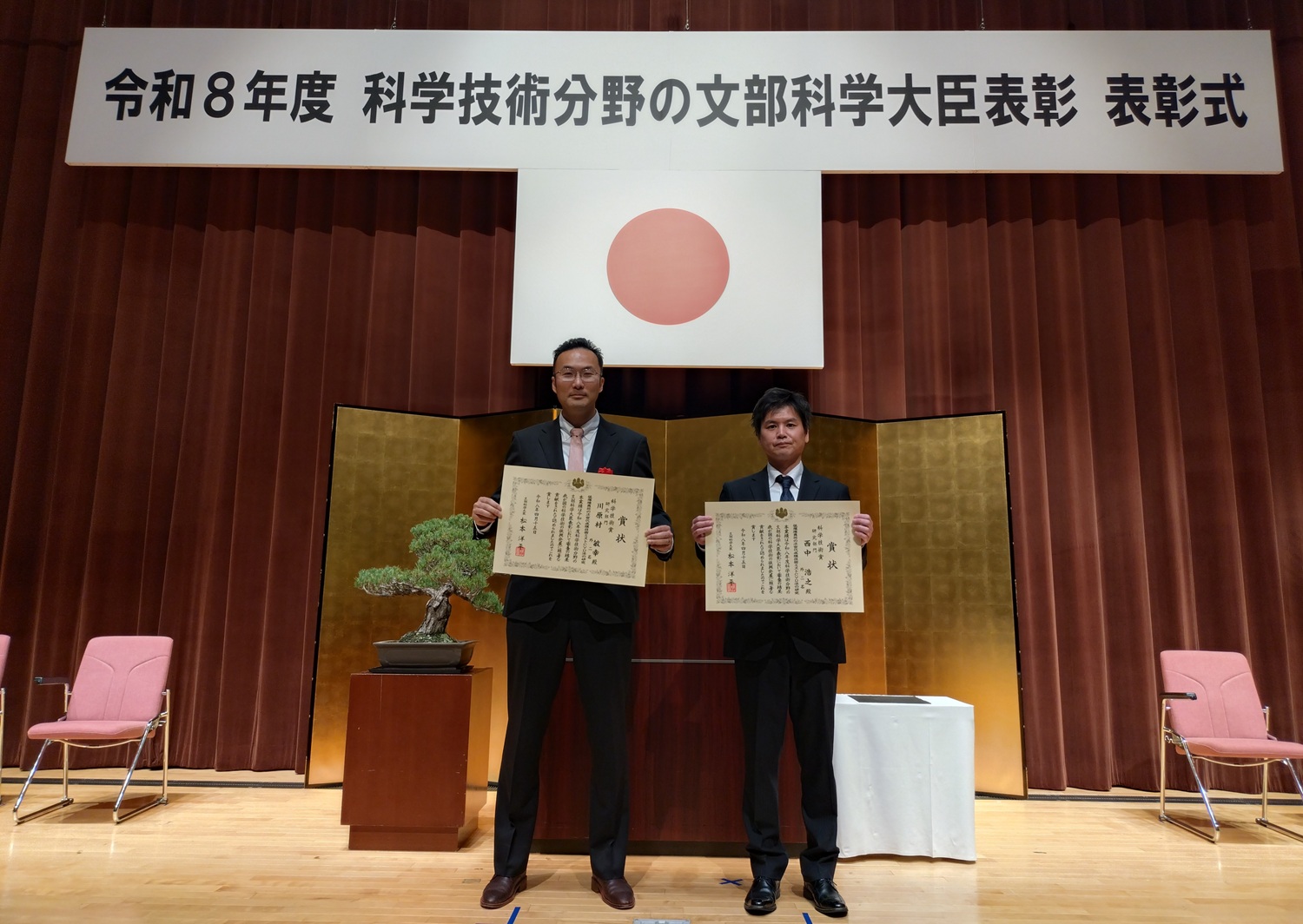 電気電子工学系 西中浩之 教授、高知工科大学 システム工学群 川原村敏幸 教授、京都大学 藤田静雄 名誉教授らの研究グループが、「令和8年度科学技術分野の文部科学大臣表彰」において、科学技術賞(研究部門)を受賞し、4月15日に文部科学省で表彰式が行われました。