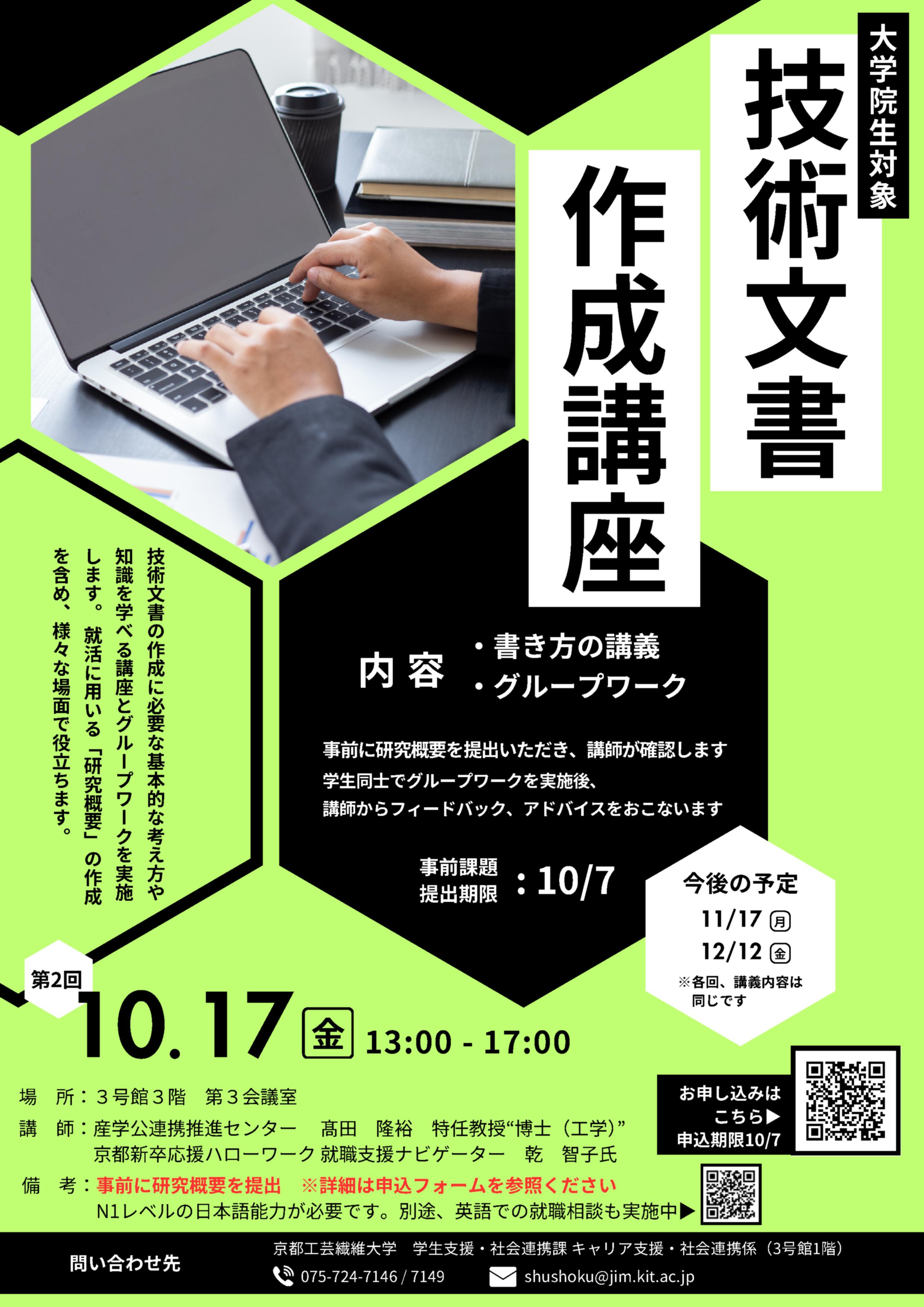 09/25 | 京都労働局 | 就活応援セミナー 応募書類の作り方(学生) |
