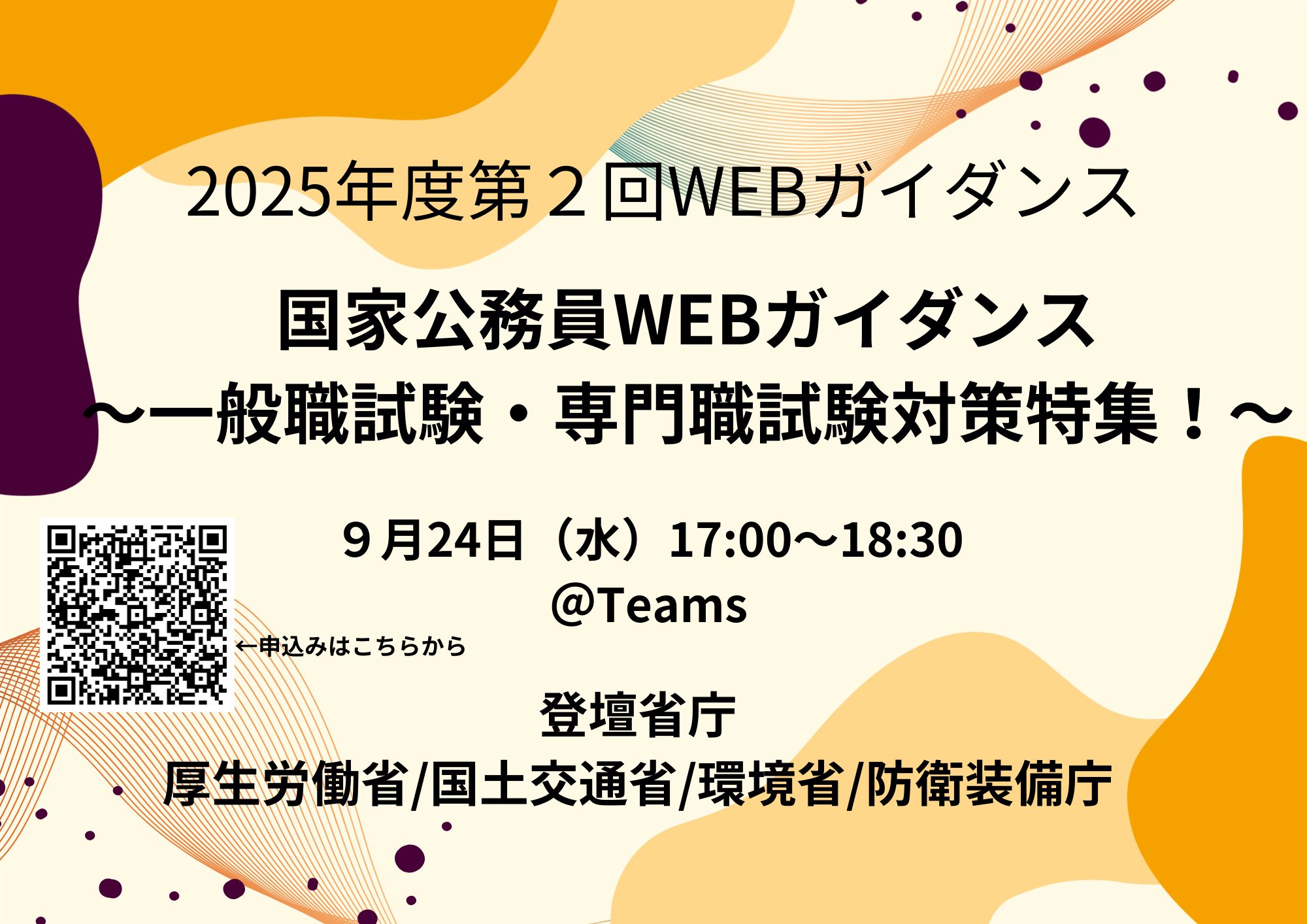 09/25 | 警察庁 | 警察庁警察行政職WEBセミナー(技術職・専門職) | 申込期間:08/27~09/16, 12:00 |