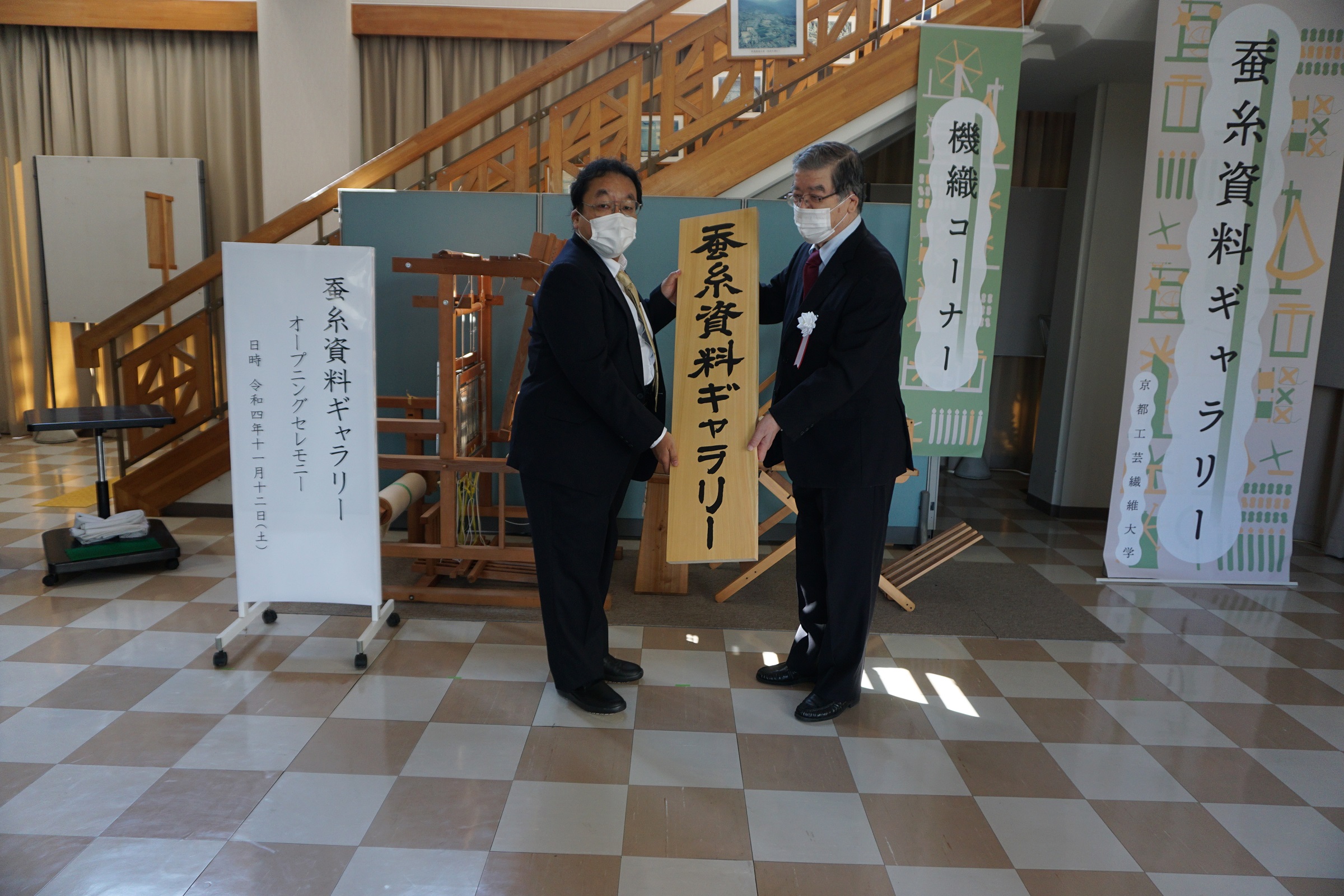 11月12日(土)、嵯峨キャンパスにて、同日開催した「嵯峨キャンパス開設100周年記念講演会」に先立ち「蚕糸資料ギャラリーオープニングセレモニー」を開催しました。