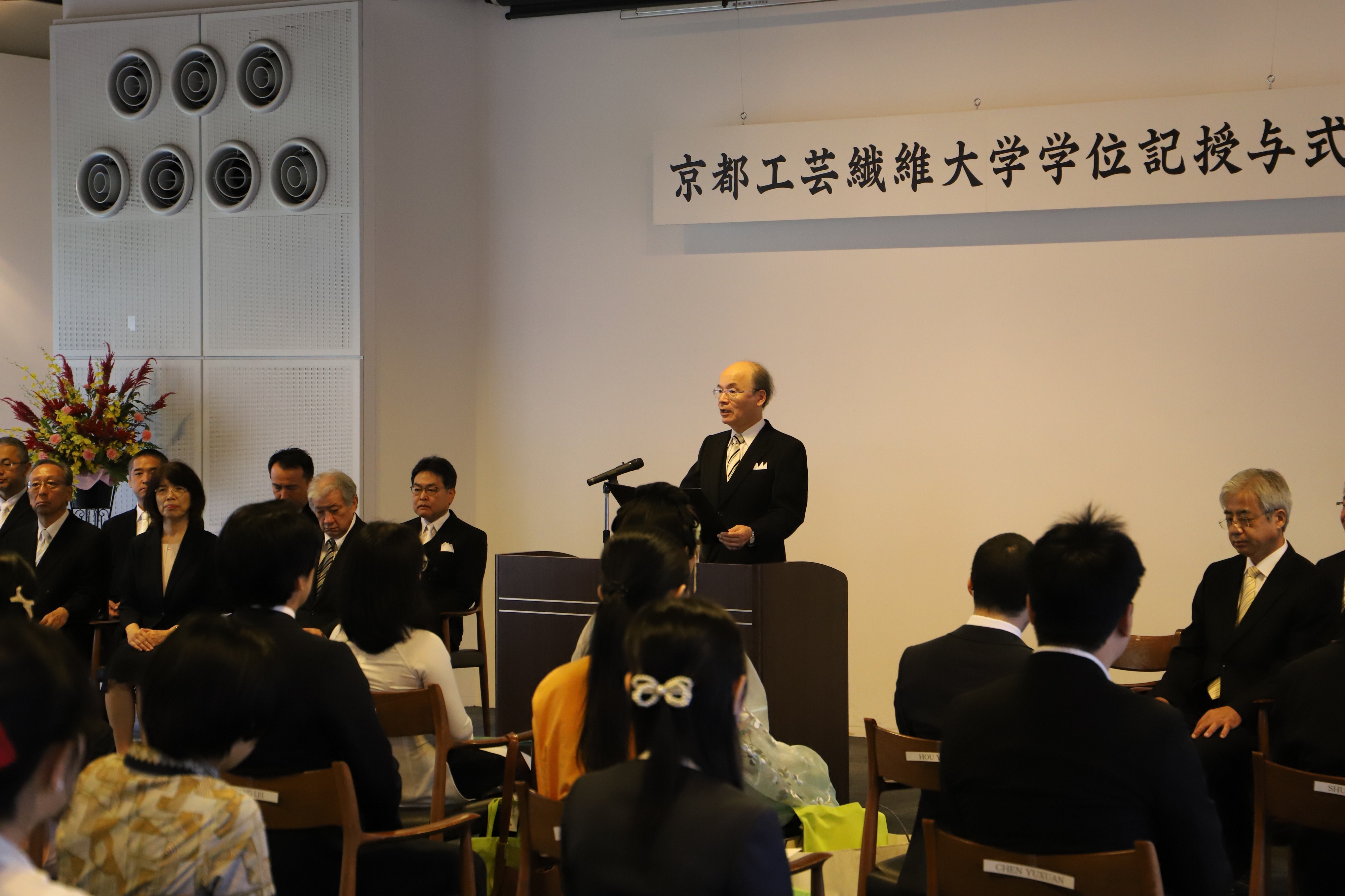 Congratulations to all of you who have received your master’s or doctoral degrees today. I would like to offer my heartfelt congratulations to you on behalf of Kyoto Institute of Technology. It is with great joy and pleasure that we are able to hold this degree awarding ceremony with you today. I also extend my congratulations and gratitude to all of the family members who supported you, other people who helped you, and the faculty members who guided you in your research. Over the last three years, only people who were being awarded a degree were able to attend this ceremony to help prevent the spread of COVID-19, so I am especially delighted that I can congratulate you directly here and now.